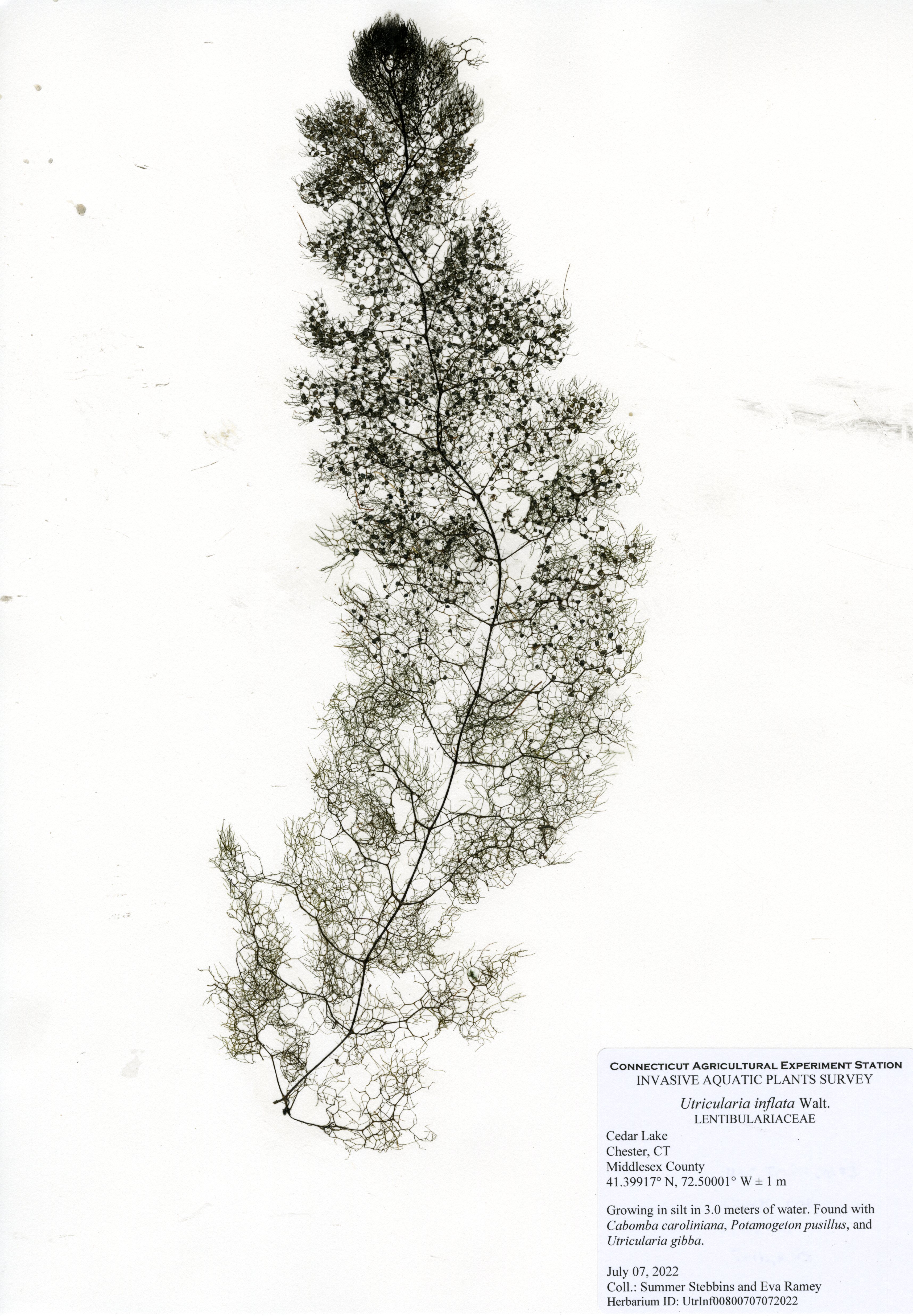 In 2022, 31 plant species were documented compared to 25 species in 2012, 26 species in 2010, and 24 species in 2004. Four invasive species were found in 2022, which include fanwort (Cabomba caroliniana), swollen bladderwort (Utricularia inflata), variable-leaf watermilfoil (Myriophyllum heterophyllum), and purple loosestrife (Lythrum salicaria). Fanwort and variable-leaf watermilfoil were found in all previous surveys. In 2022, both plants were found in large patches around the entire shoreline of the lake. Fanwort appears to have increased while variable-leaf watermilfoil has slightly decreased. Swollen bladderwort is likely a new invasive species to Connecticut. DNA research of this species is ongoing and potential impacts to waterbodies are being investigated. Purple loosestrife is a wetland species that CAES IAPP has not always recorded. Thus, it was likely present in previous years.