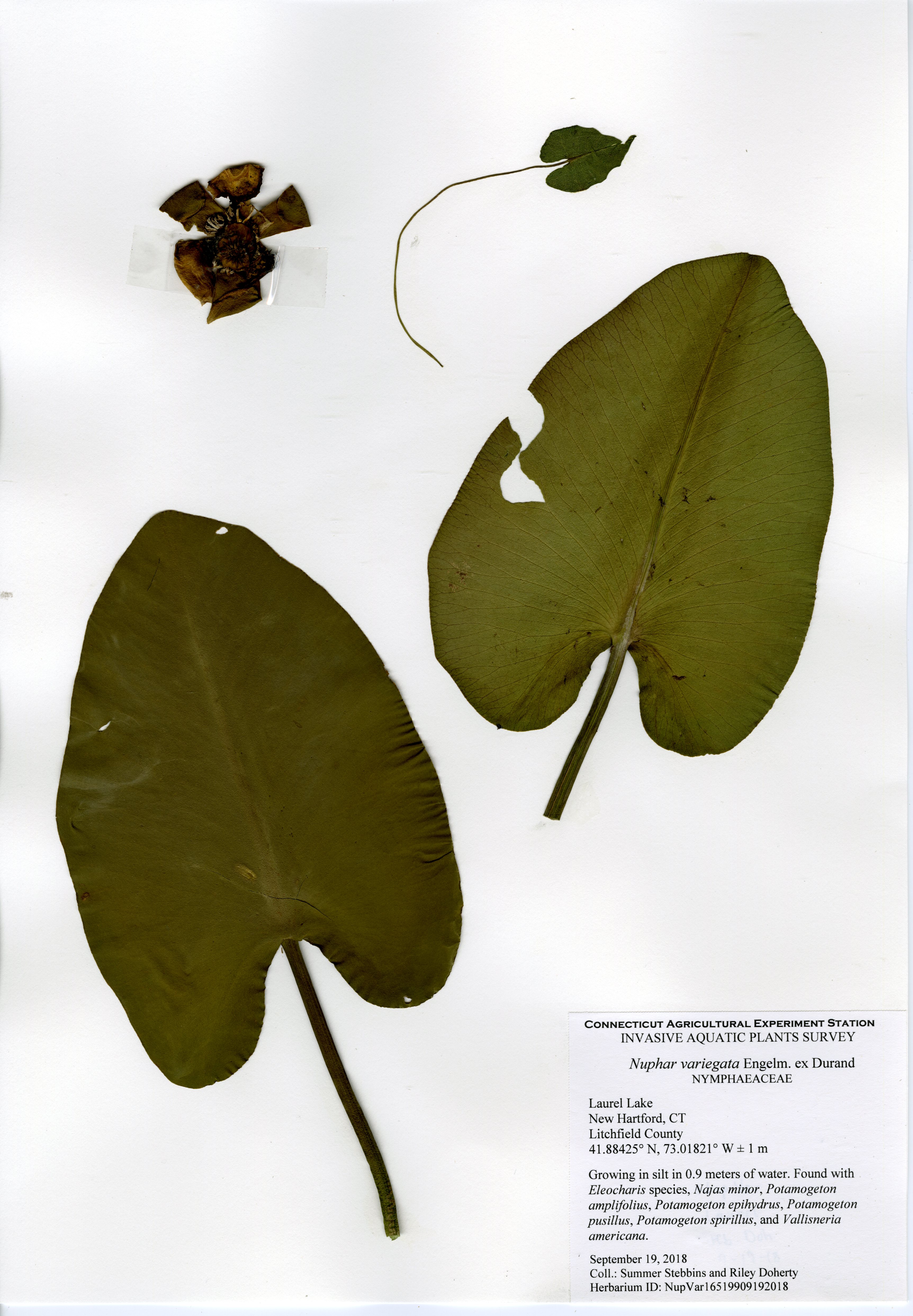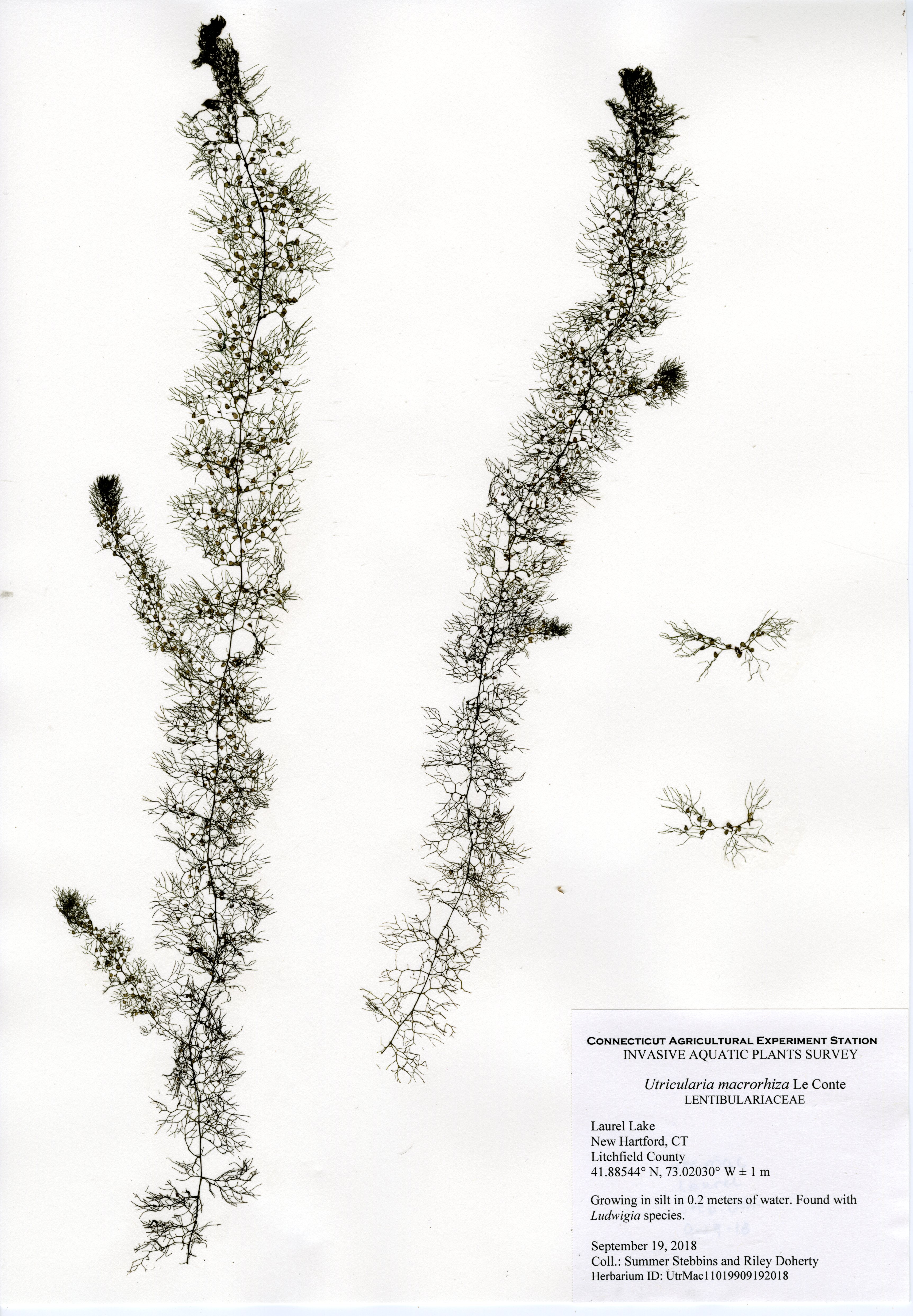 The CAES IAPP performed the third survey of the lake in 2018. The first survey was in 2012, the second in 2013. Compared to previous surveys, aquatic plant species were much less abundant. The same two invasive species were found, brittle waternymph (Najas minor) and phragmites (Phragmites australis), however less abundant. A new patch of phragmites was discovered near the dam at the northern end, and brittle waternymph was only found at the southern end of the lake.