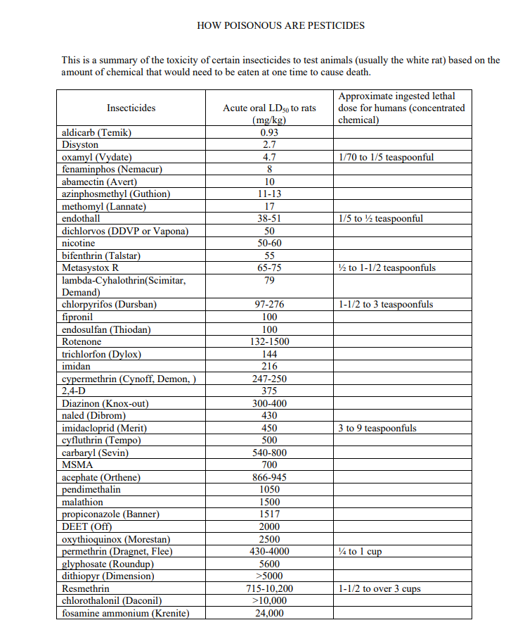 (b) the pesticides used, their properties, such as effectiveness against certain pests and their toxicity to humans and other warm blooded animals. These pesticides should include, but not be limited to: